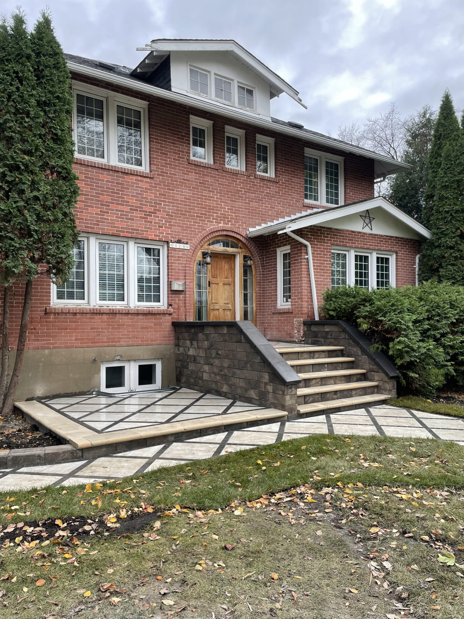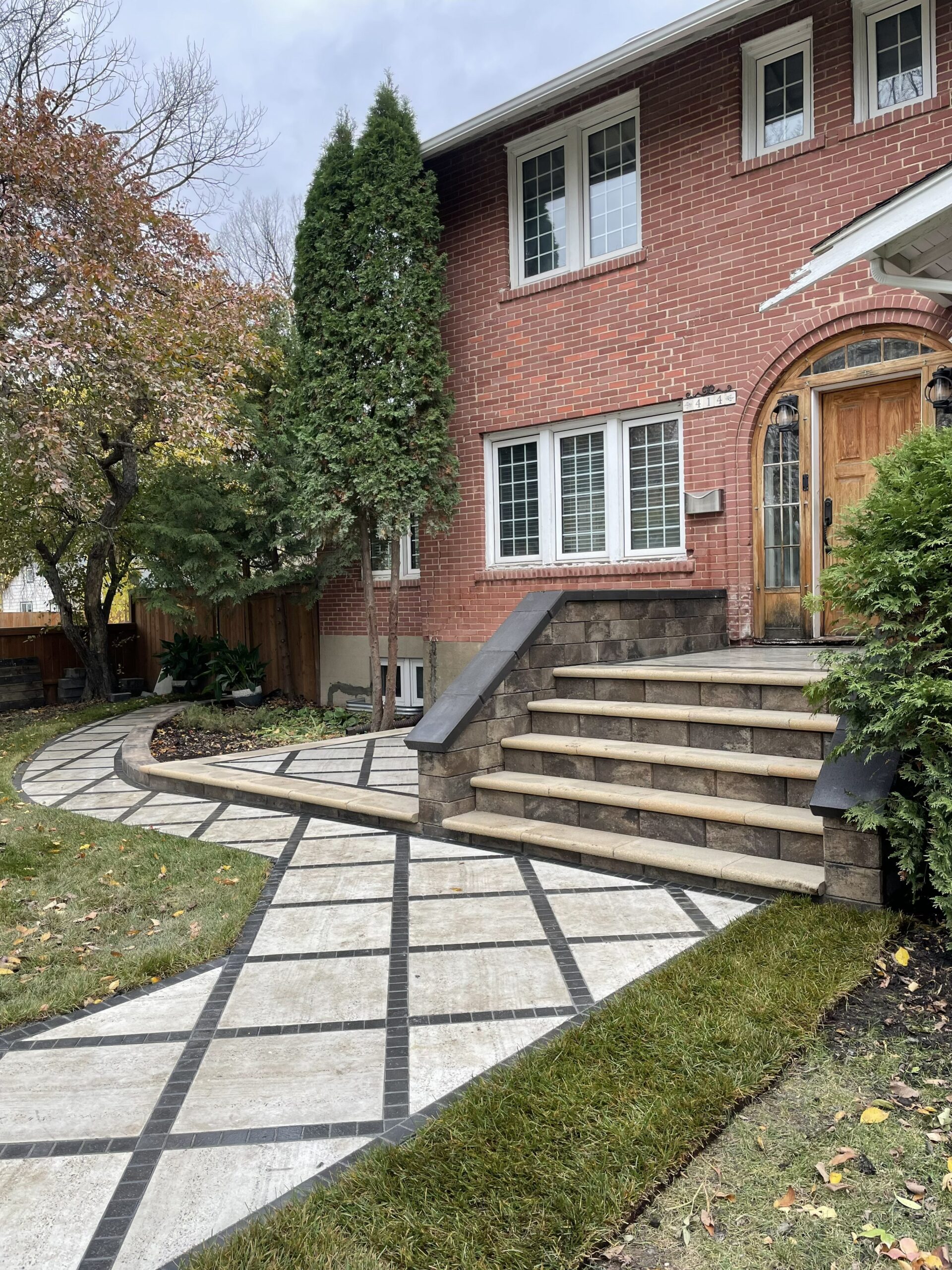 This red brick character home had everything — the arched doorway, the craftsman roofline, the kind of presence that only comes with age. What it was missing was a front yard that could meet it at the door.